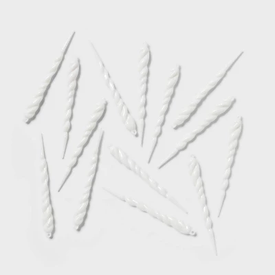 Your tree can help turn any room into a winter wonderland when you decorate it with this 14-Count Glitter Icicle Christmas Ornament Set from Wondershop™. Made from shiny plastic, these icicle ornaments sparkle in the glow of your Christmas lights, and they’re equipped with top hooks for easy hanging from any branch. The solid hue makes them easy to coordinate with a wide variety of ornaments, lights and garlands, and with 14 icicles per pack, you’ll get a good head start on decorating your tree.