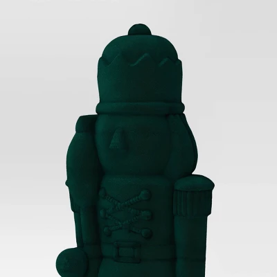 Bring a nostalgic and festive touch to your holiday decor with this Flocked Nutcracker from Wondershop™. Designed in a green hue, this flocked nutcracker matches with the holiday vibes and helps create a one-of-a-kind display. You can place this Christmas figurine set solo on a mantel, coffee table or console table, or mix and match with other holiday decor for festive flair.