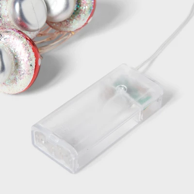 Create a delightful setting for the holiday season with the 30-Count LED Dewdrop with Red Mushrooms Christmas Indoor Novelty String Lights from Wondershop™. Designed in the shape of red mushrooms with silver bases, these novelty string lights are strung on a silver wire. The LED bulbs glow with a constant lighting effect and require 2 AA alkaline batteries, and they feature an easy on/off switch.