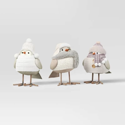 Decorate your home for the holiday season with this 3-Pack Christmas Fabric Tinsel Tidings Bird Decor from Wondershop™. Dressed in outdoorsy tinsel outfits with knitted hats, pom-pom scarfs and sparkly headbands, you’ll love these little birds’ festive style. Designed for indoor use, you can display them together or mix and match with other holiday figurines to create a standout seasonal display.
