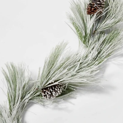 9' Battery Operated Pre-Lit Flocked Long Needle Artificial Pine Christmas Garland Warm White LED Lights – Wondershop™