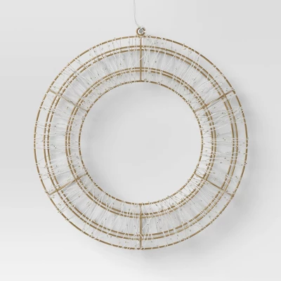 Bring festive sparkle to your home with these LED High Density Champagne-Metal Wreath Christmas Novelty Silhouette Lights with White Color Light Bulbs from Wondershop™. This novelty silhouette light is designed in the shape of an open-wire wreath in a champagne hue, wrapped around in a clear wire adorned with 900 white LED bulbs for a dazzling look. Hang it anywhere inside or outside your home wherever you want to infuse a little extra illumination and holiday magic.